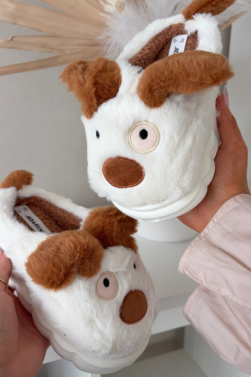 Mules brunes pour enfants avec fourrure "Chiens" Farnise