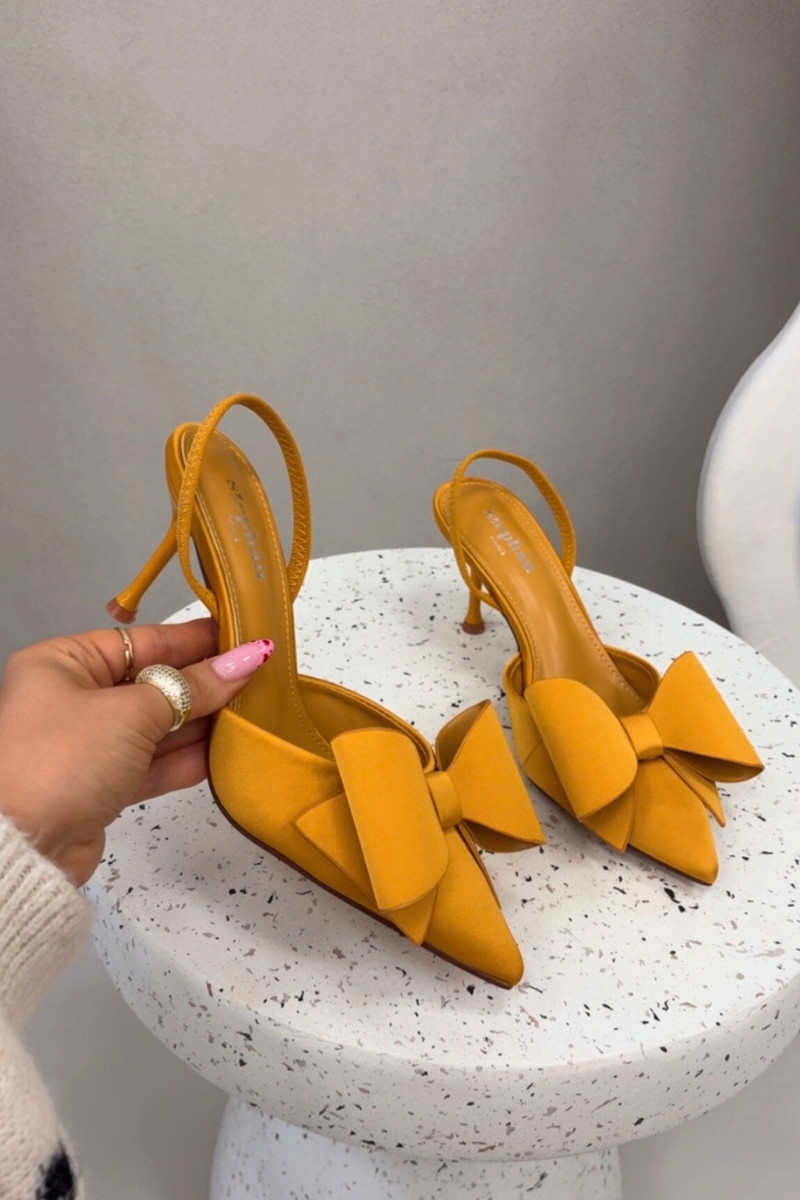Escarpins jaunes avec talons ouverts et nœud « Eklevia »