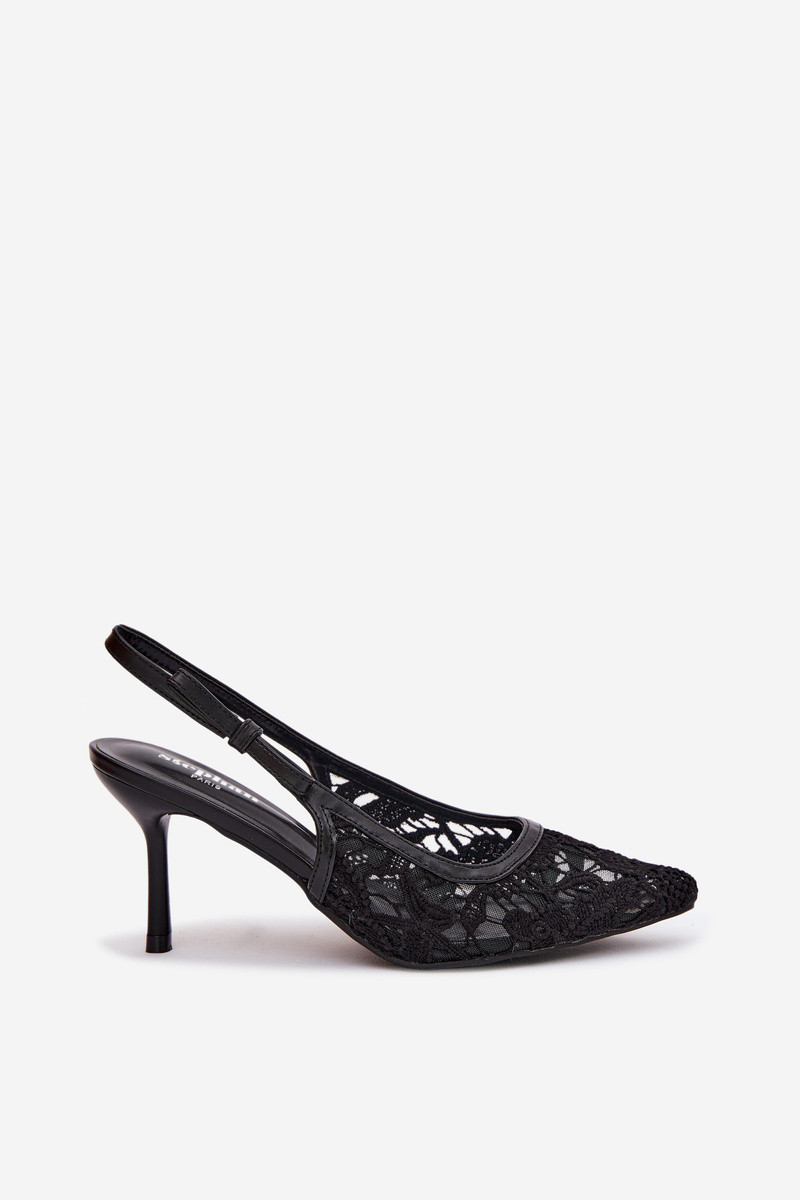 Sandales pour femmes avec des talons fins avec de la dentelle couleur noire Pelivelle