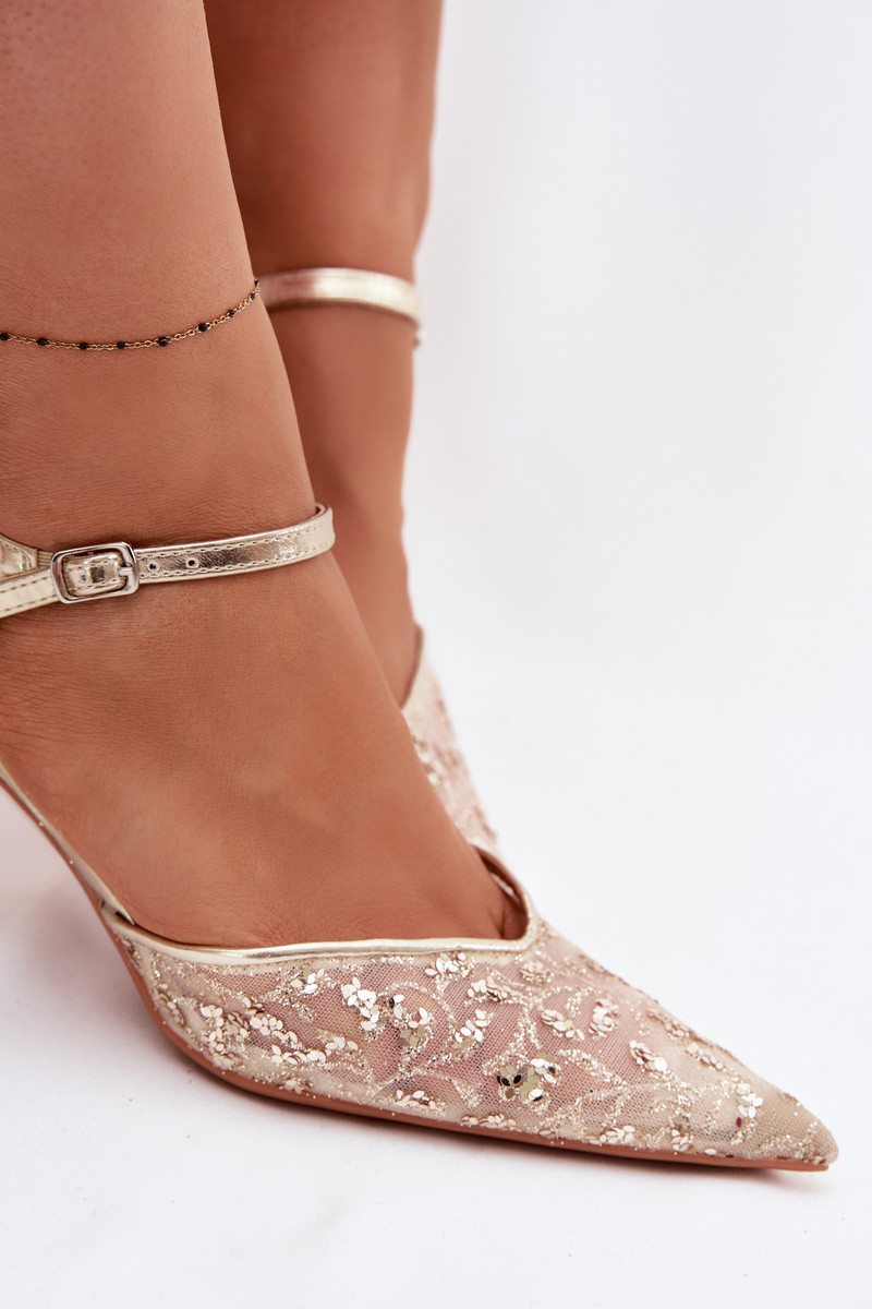 grille Sandales pour femmes avec des talons finsavec éclatującym Zdobieniem couleur argent Laria