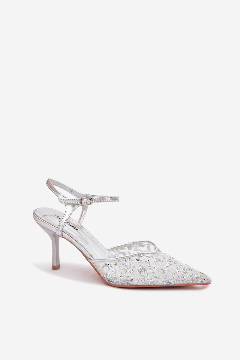 grille Sandales pour femmes avec des talons finsavec éclatującym Zdobieniem couleur argent Laria