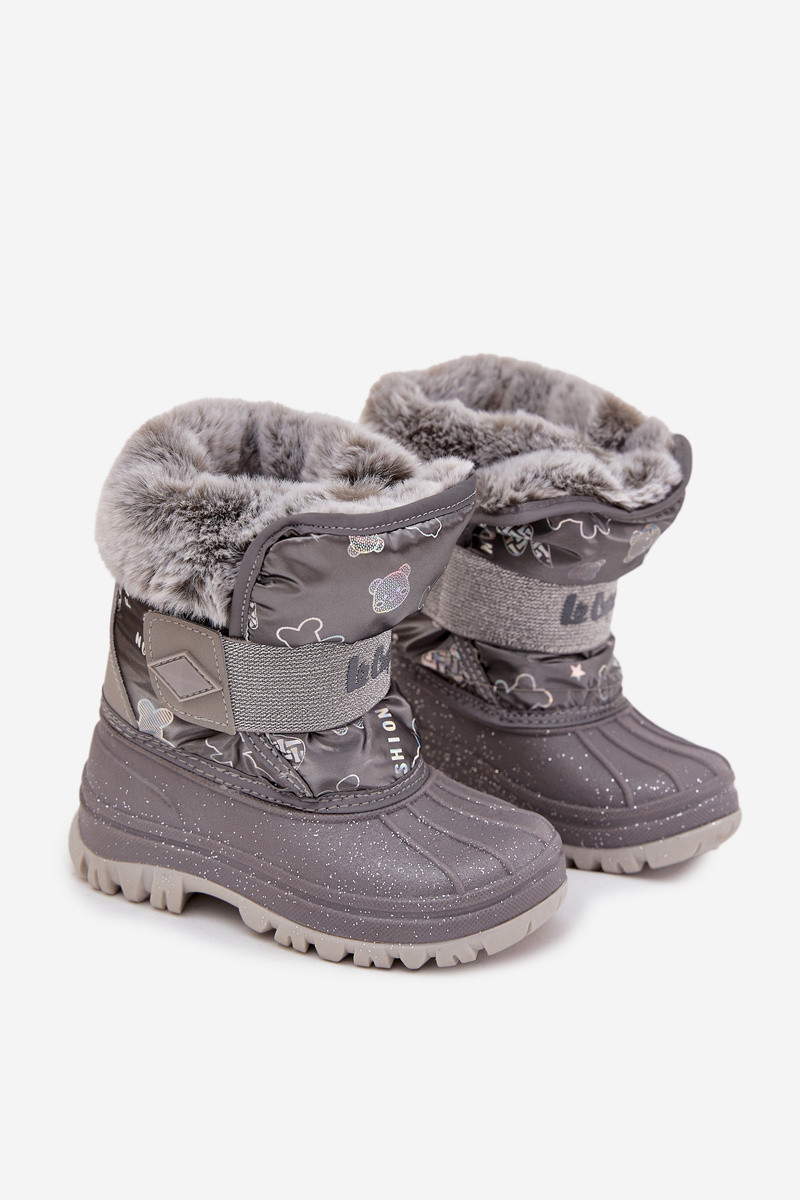 Bottes de neige pour enfants Lee Cooper LCJ-25-10-3788 en gris avec fourrure et attaches velcro