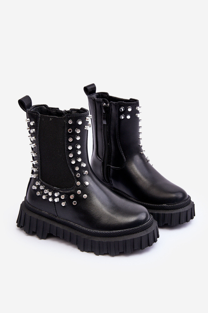 Bottines noires pour enfants Adelie, décorées de cristaux de montagne