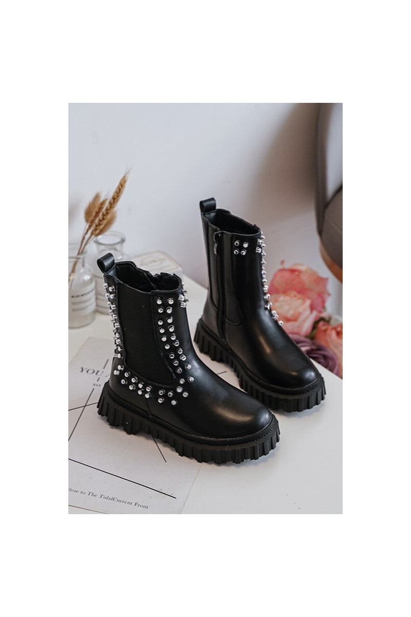 bottes élégantes Puéril Décoré Avec des strass couleur noire Adelie