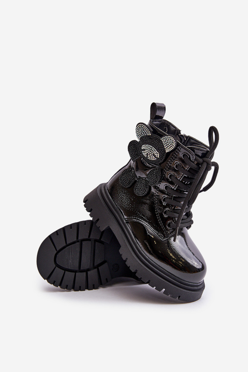 Bottines isolées pour enfants avec ours en peluche et effet laqué couleur noire Relobia
