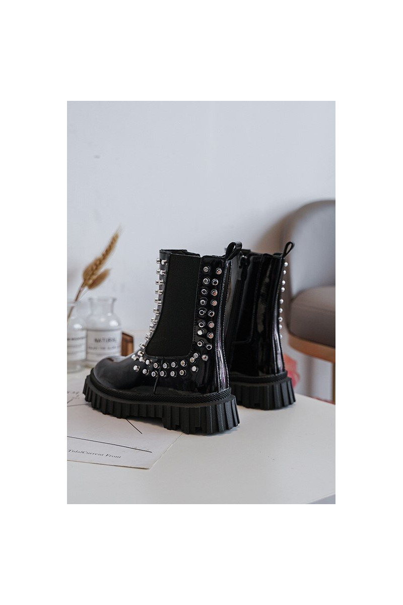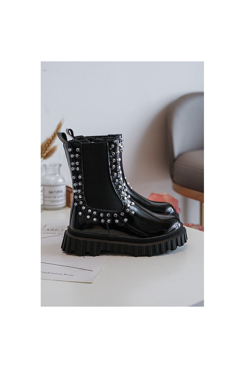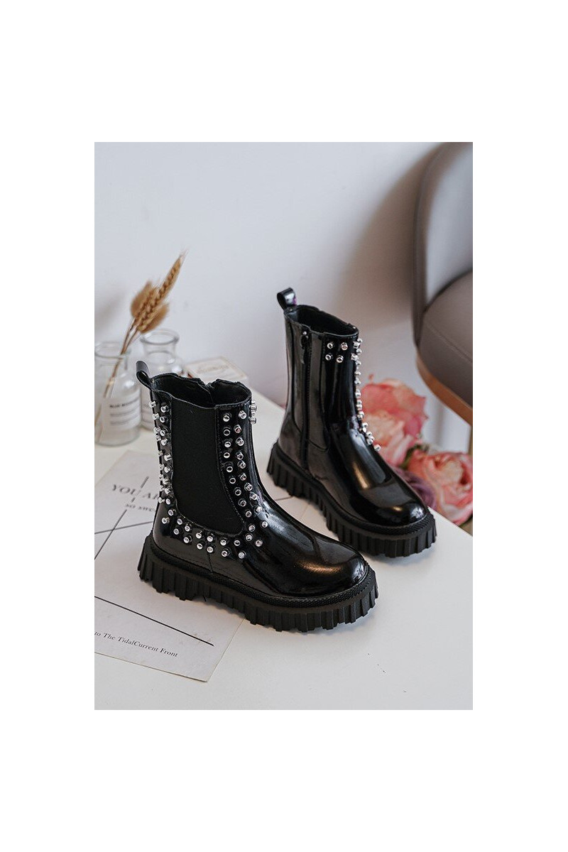 Bottines stylées pour enfants avec effet verni décorées de cristaux de roche noires Adelie