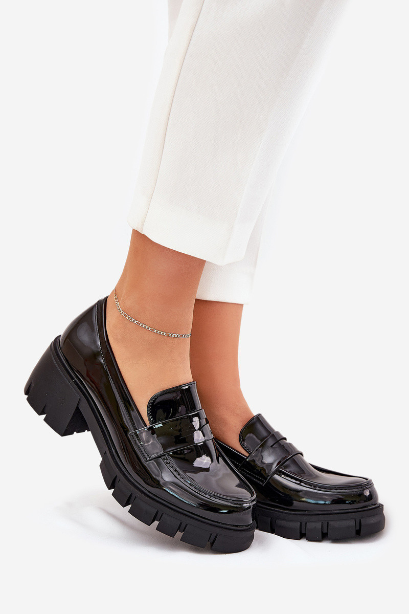 avec effet vernis chaussures Féminin Sur des talons massifs couleur noire Felonith