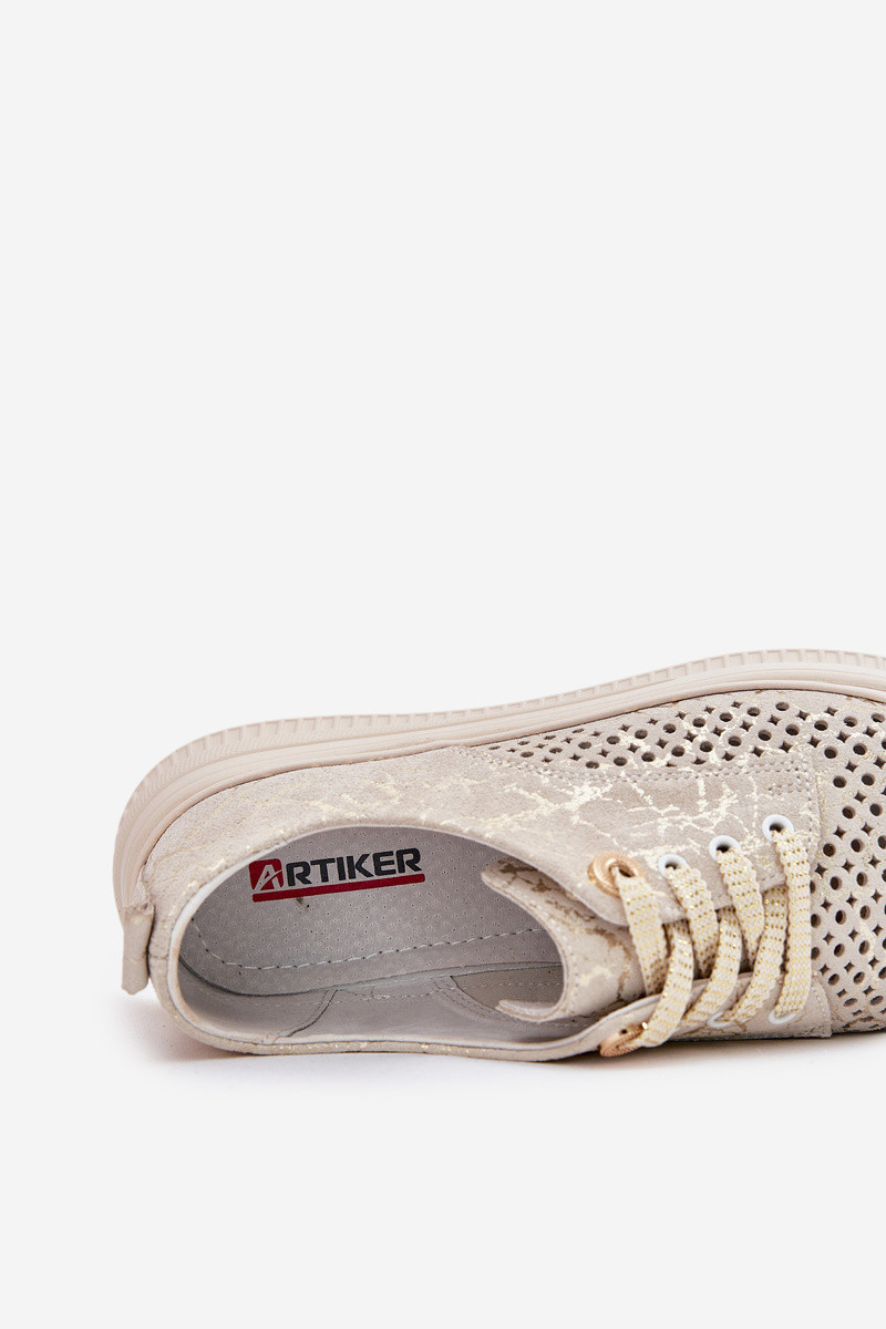 Daim ajouré chaussures Féminin avec une plateforme Artiker 56C2108 beige-couleur dorée