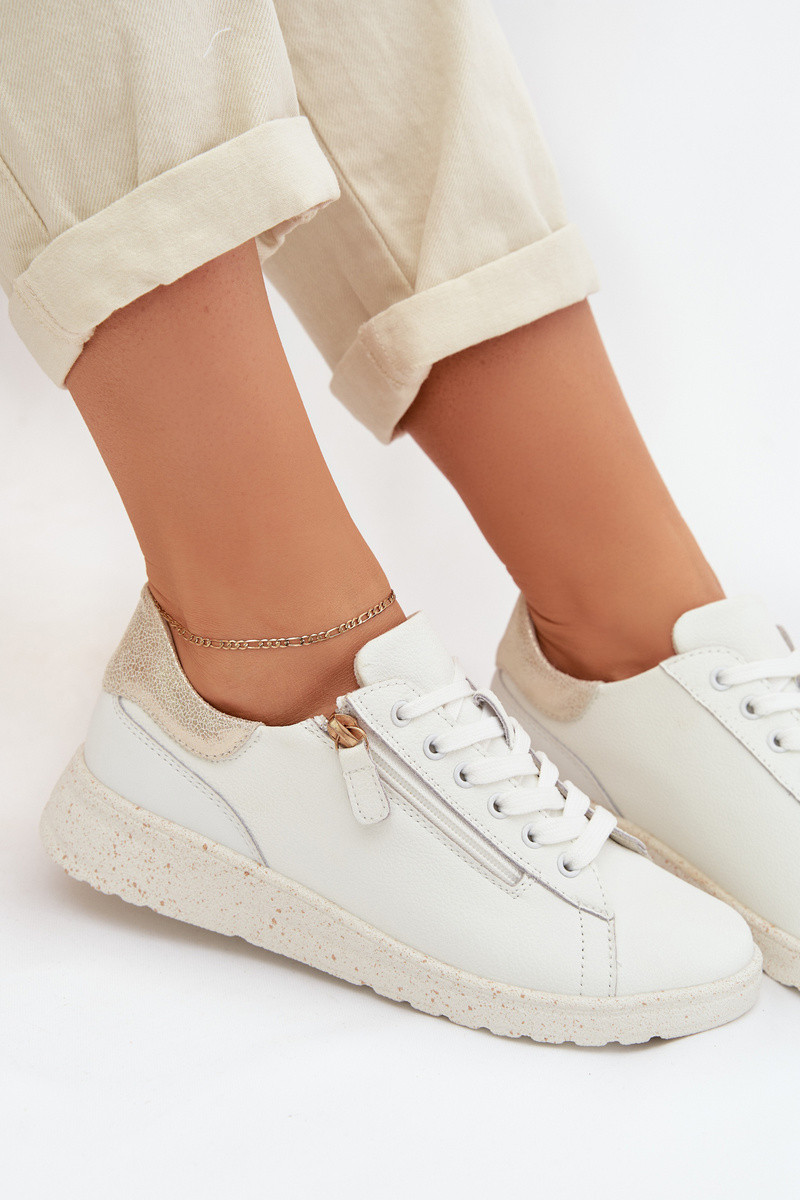 Bottes en cuir pour femmes avec fermetures éclairs couleur blanc-or Dorothea