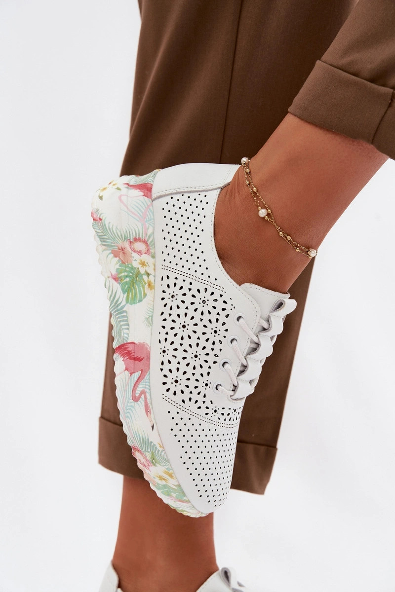 Chaussures en cuir pour femmes avec éléments en dentelle Telina couleur blanche