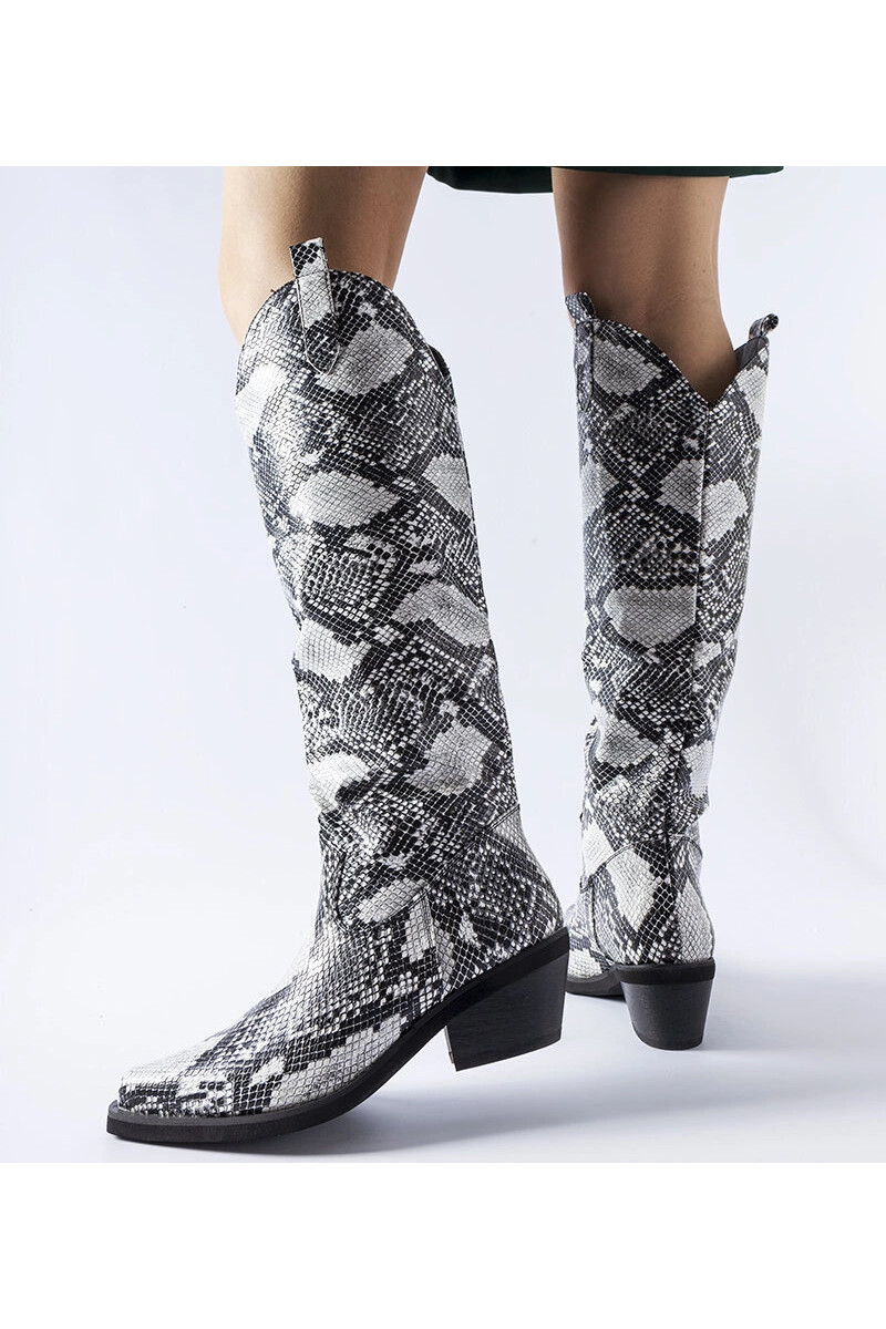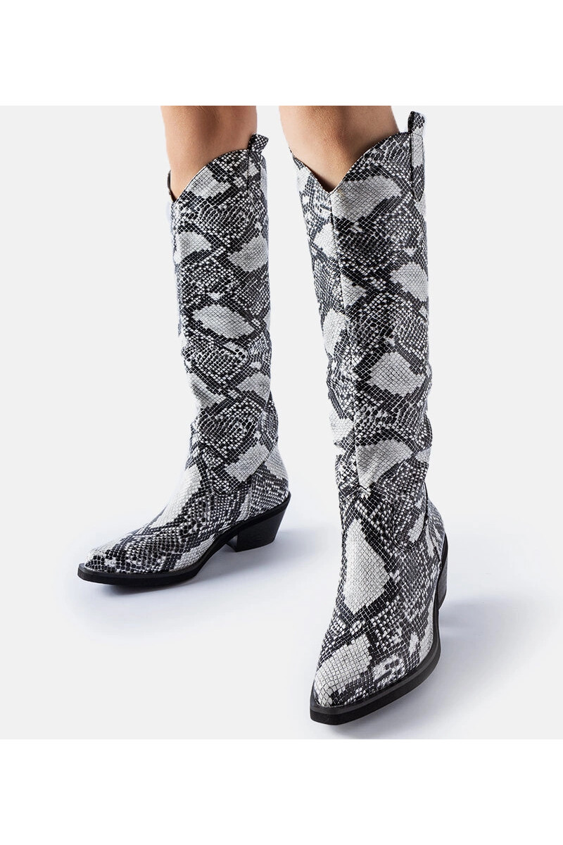 Bottes de cowboy Chapin noires et blanches à imprimé serpent