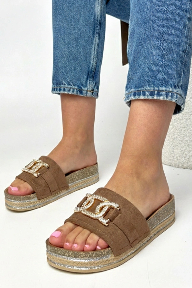 Sandales plateforme marron avec ornements brillants Faustine