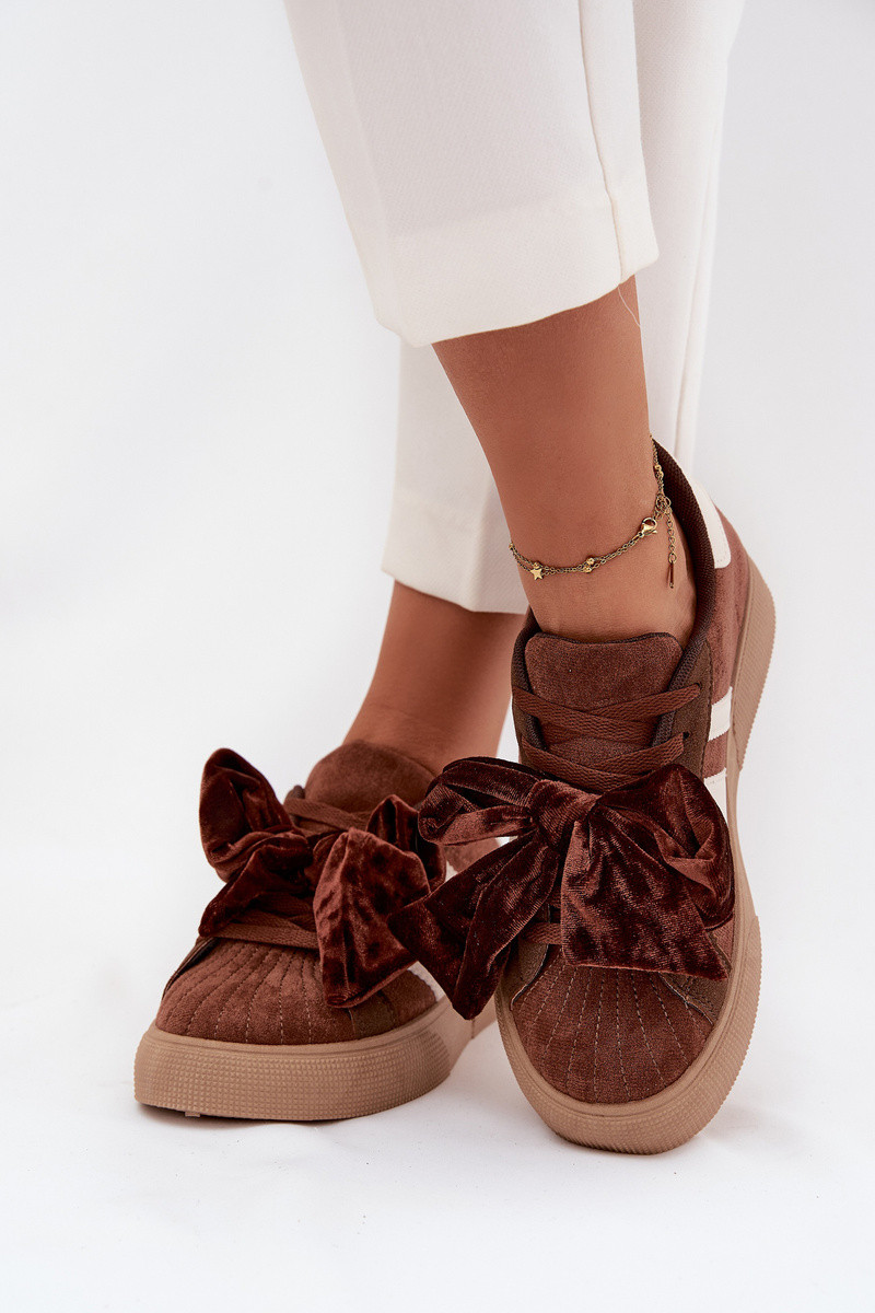 Baskets de style sportif pour femmes avec nœud en velours, couleur marron, Ashlyn