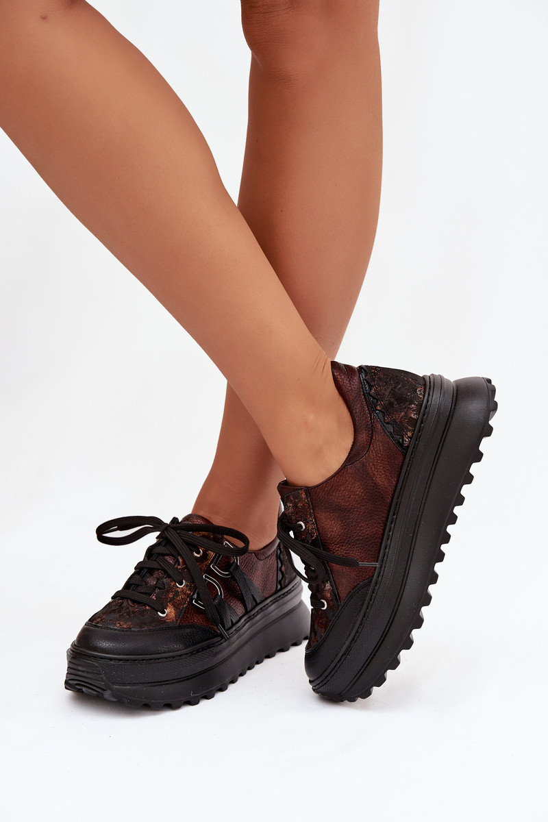 Baskets en cuir pour femmes avec plateforme Tai turiciejka 06562-25 couleur chocolat
