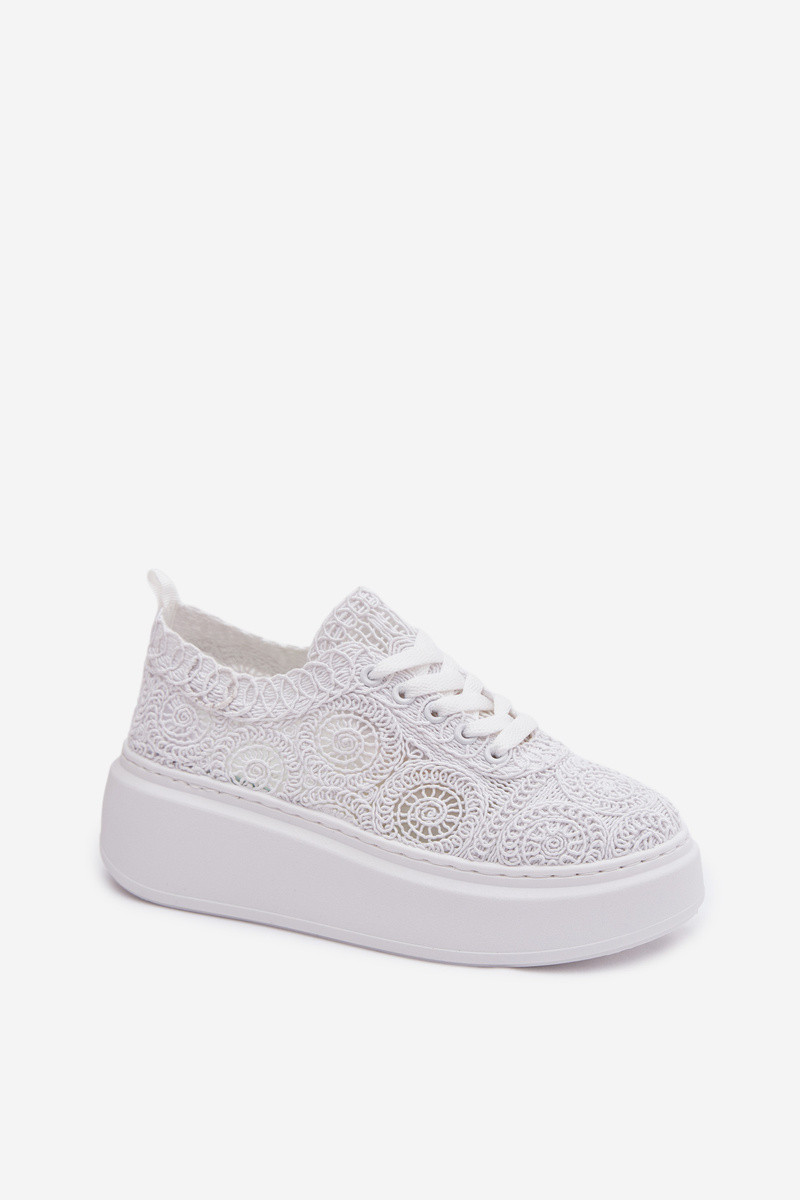 Baskets de sport en crochet pour femmes avec plateforme, couleur blanche, Evalora
