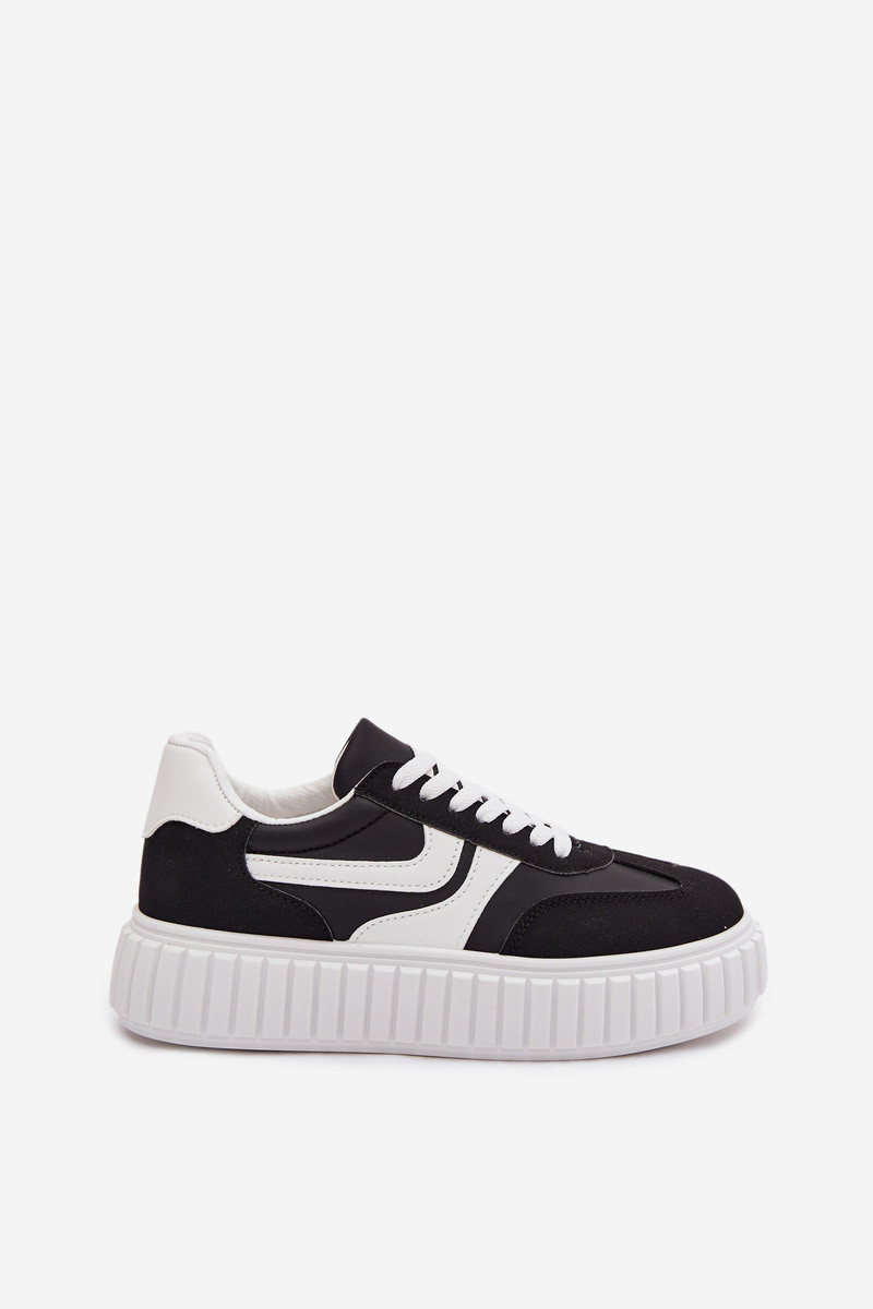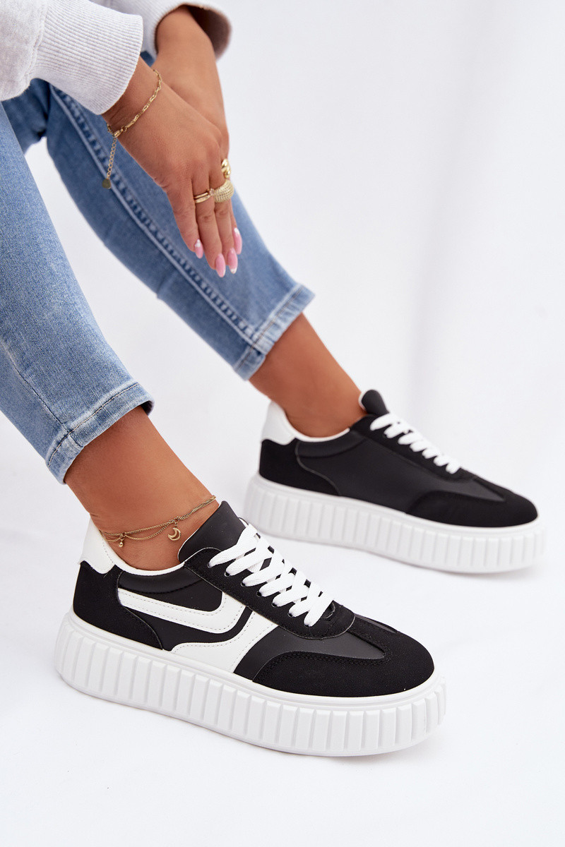 Chaussures modèle baskets Féminin avec une plateformeen daim écologiqueu couleur noire Cadrina