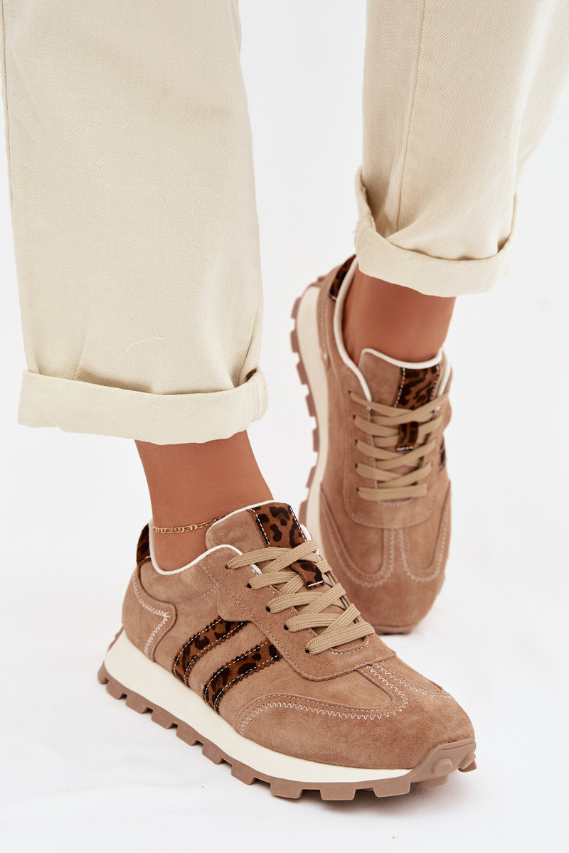 Baskets en suede avec plateforme et motif léopard S.Barski LR61-7071 couleur marron