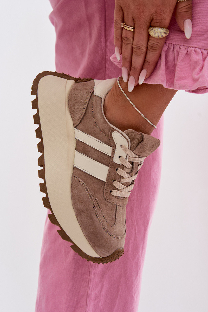 Chaussures modèle baskets en daim avec une plateforme D&A GR61-5986 beige