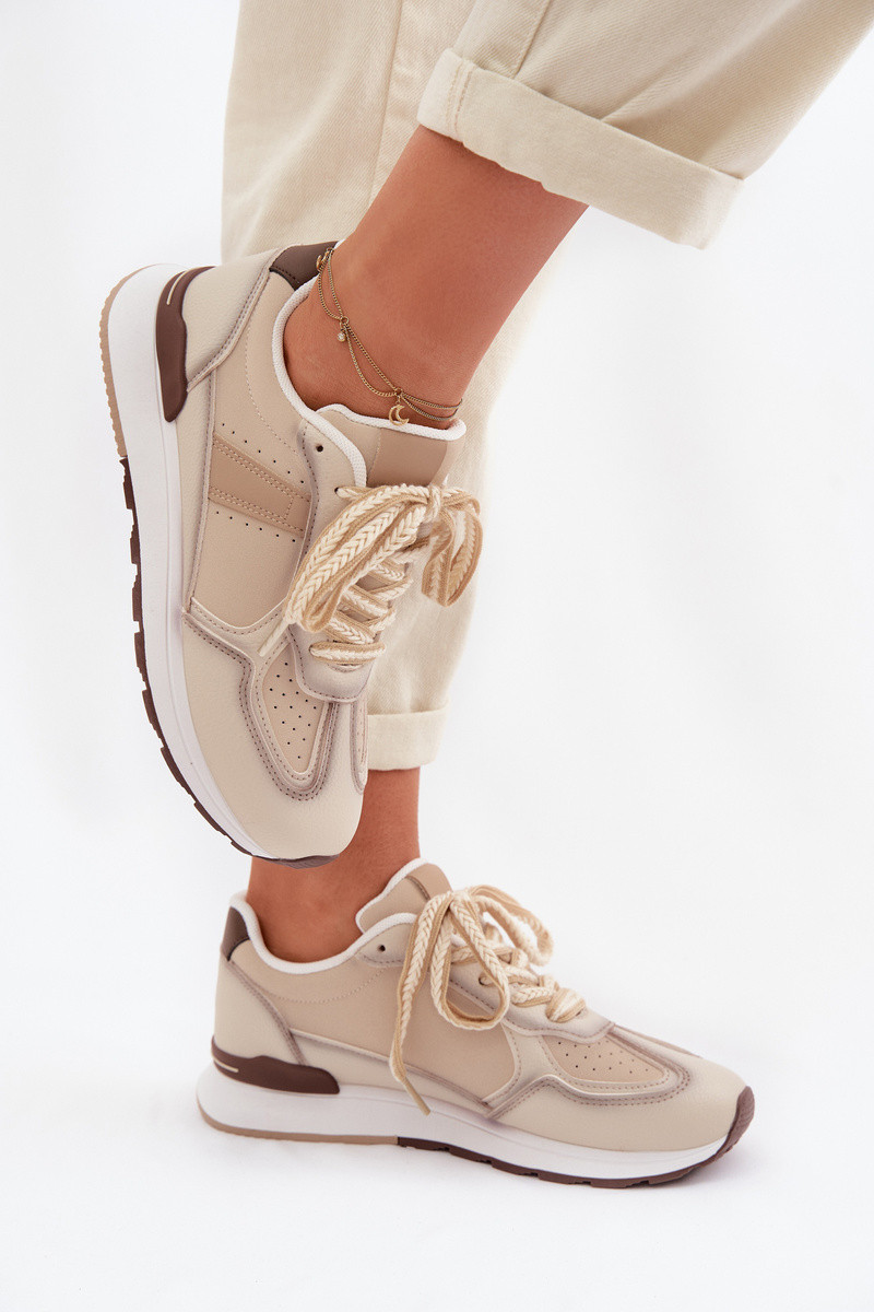 Chaussures modèle baskets Féminin en cuir écologique beige Kelira