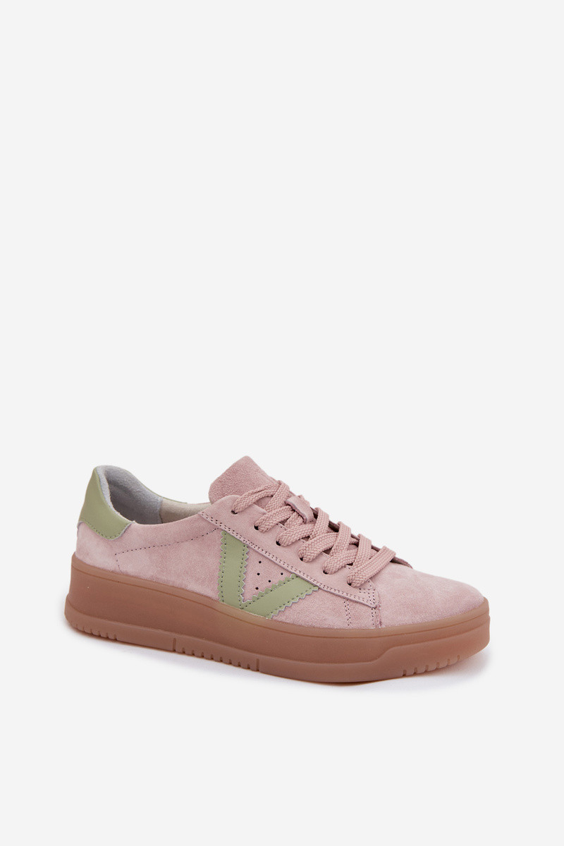 Baskets femmes style sportif en daim naturel avec plateforme Vinceza 79597 couleur rose
