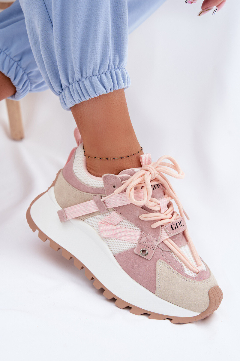 Chaussures de sport roses en daim pour femmes avec plateforme GOE TT2N4022