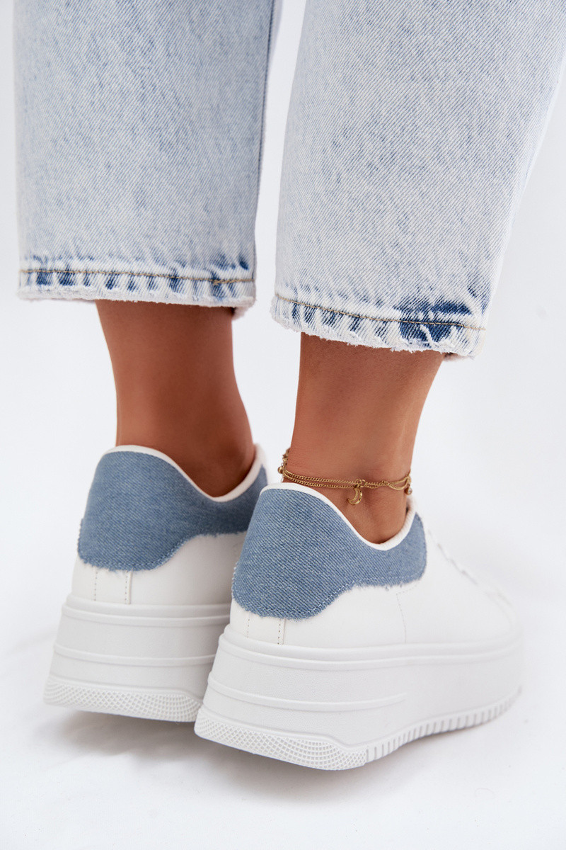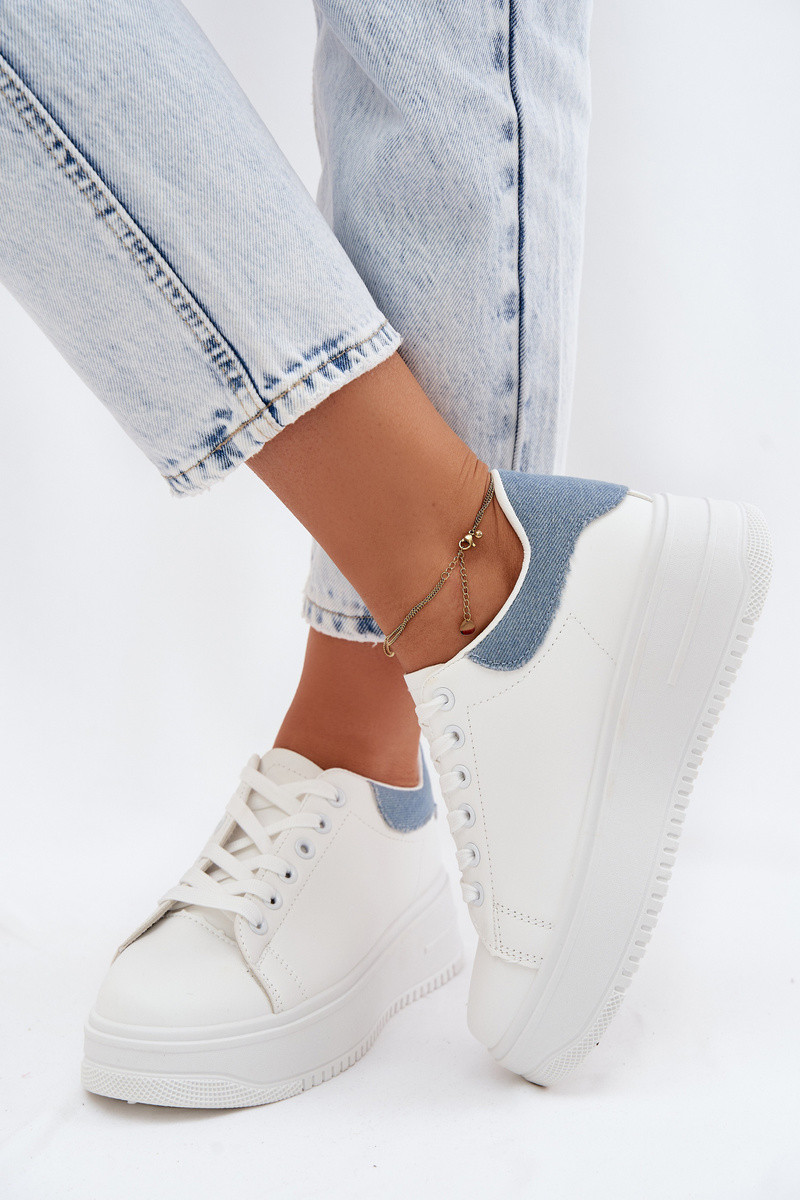 Baskets blanches et dorées pour femmes avec plateforme et brillance en simili cuir Calinae