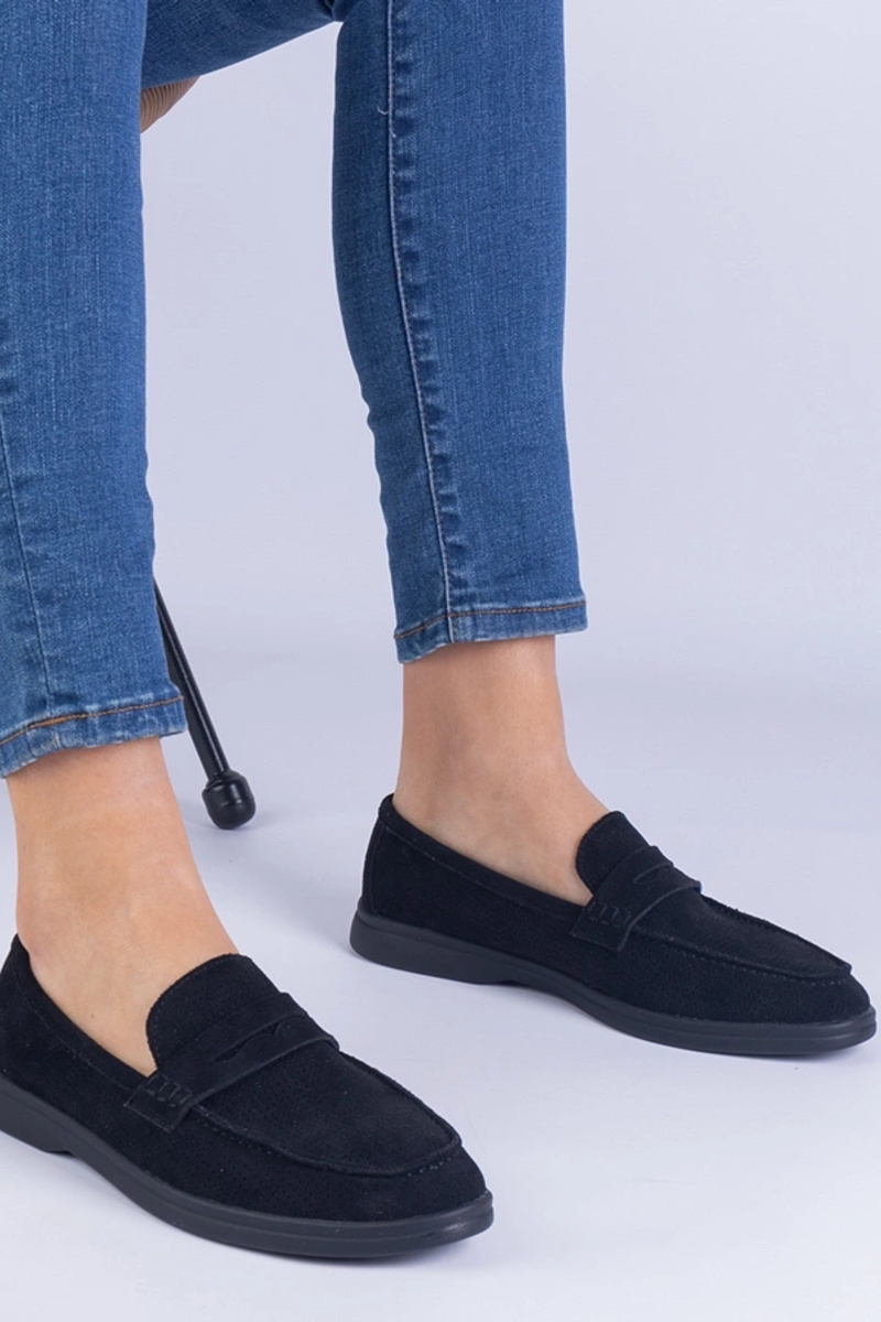 Mocassins classiques ajourés noirs en daim synthétique Sargossi