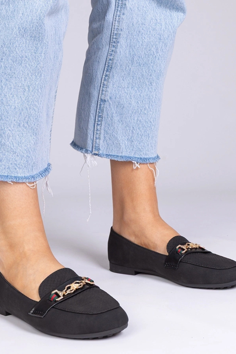 Mocassins noirs en suède synthétique avec décoration dorée, "Daliana"