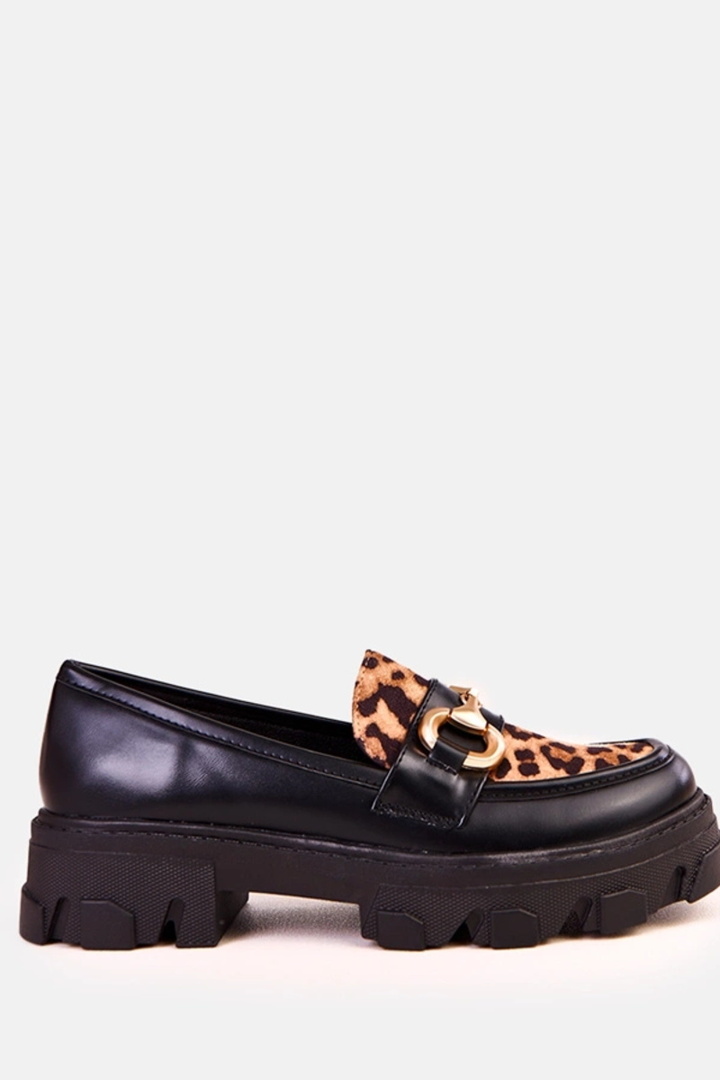 Mocassins noirs avec accent à motif léopard et embellissement doré Ruben
