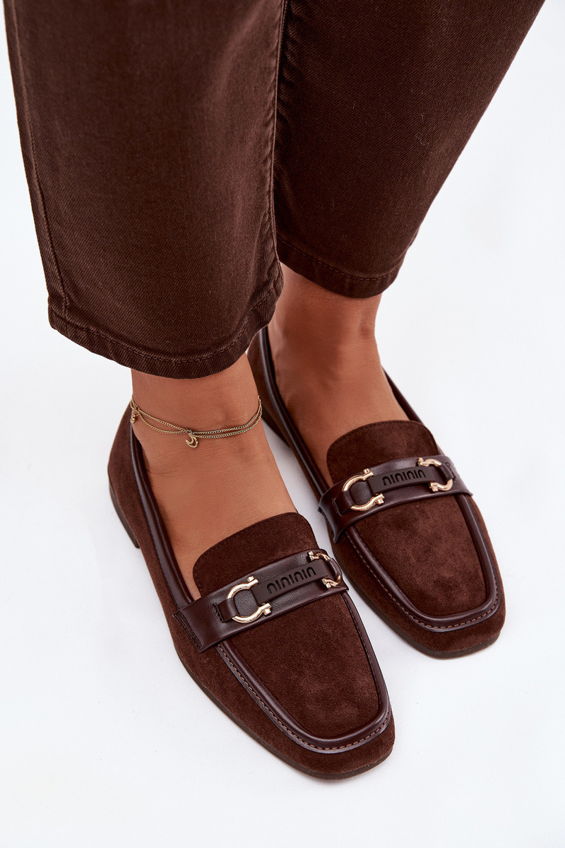 Mocassins pour femmes en chocolat avec des éléments décoratifs Evelora