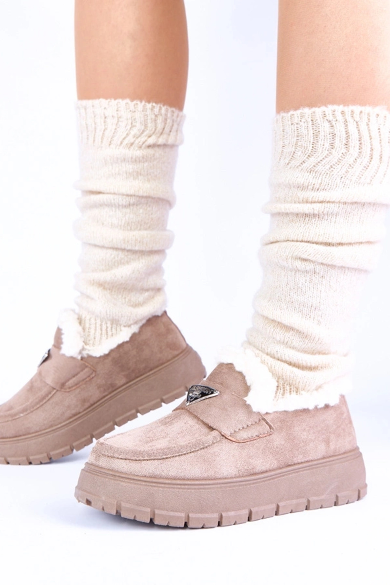 Mocassins sable foncé sur plateforme avec fourrure Kirby