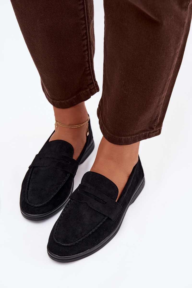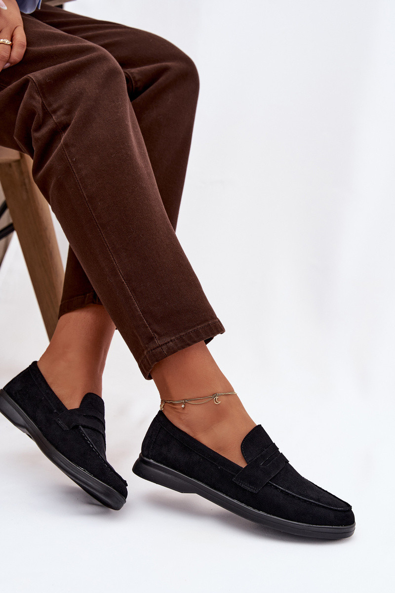 mocassins pour femmesen daim écologiqueu couleur noire Renelia
