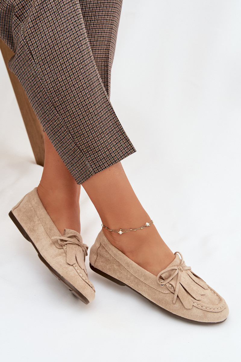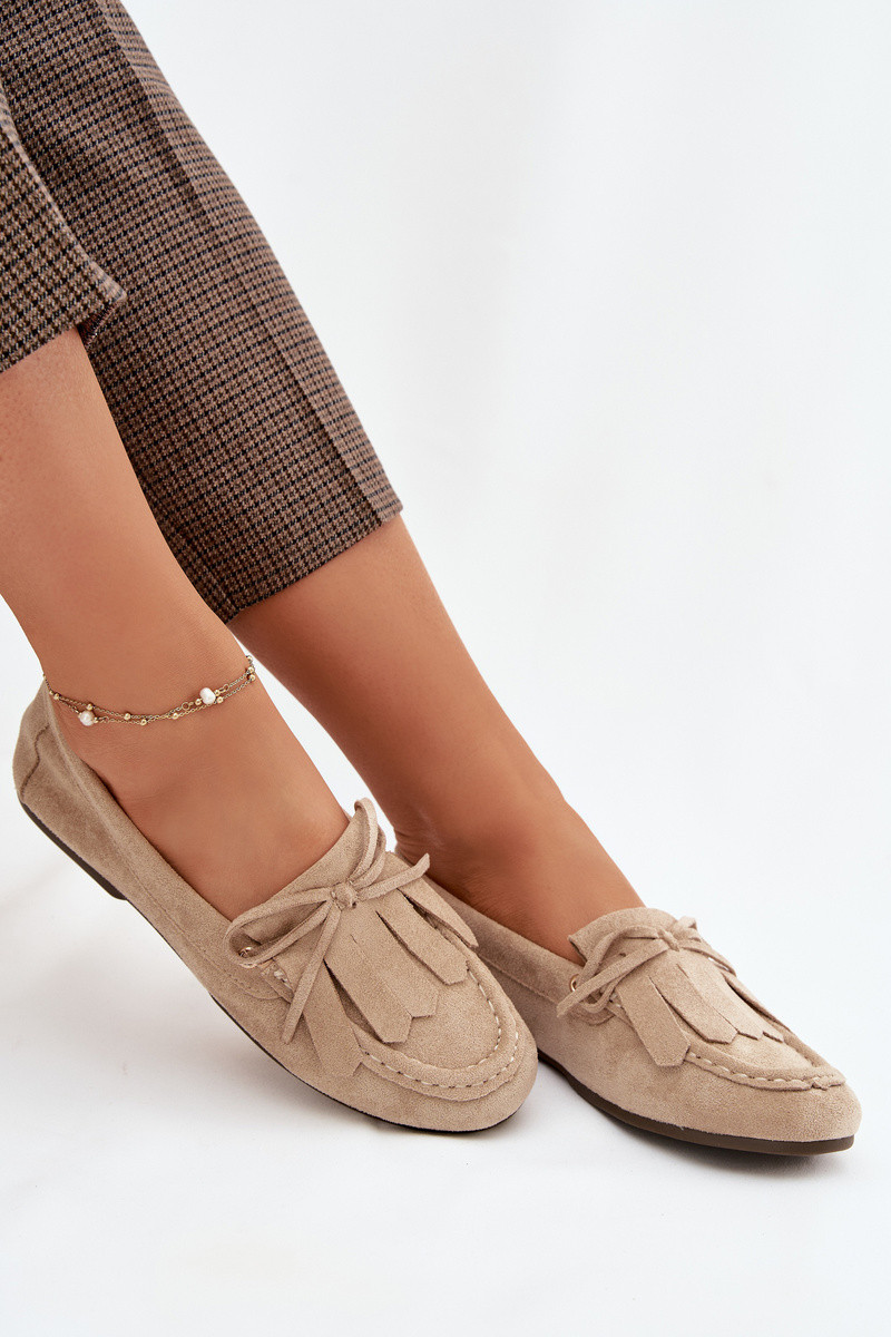 Mocassins pour femmes Glorina couleur sable avec des détails stylés et des franges