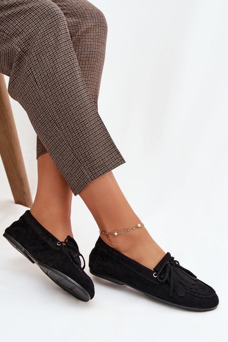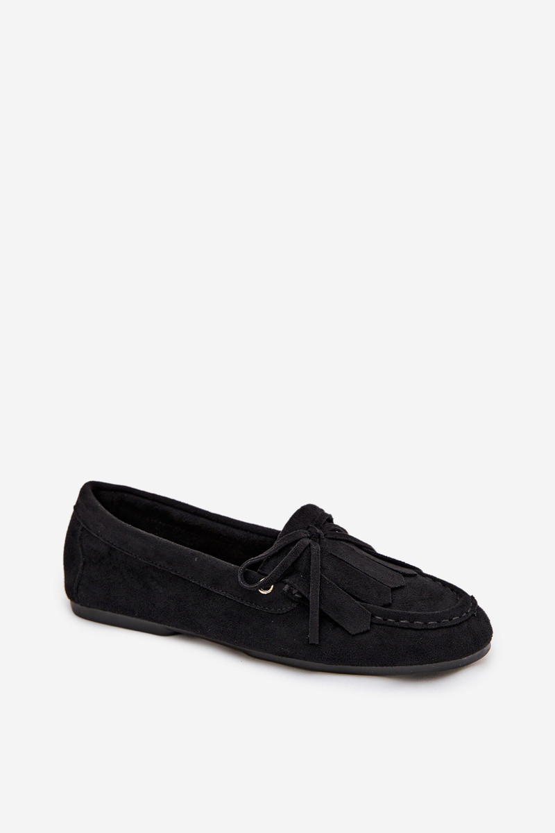 Mocassins pour femmes Glorina noirs avec des détails stylés et des franges
