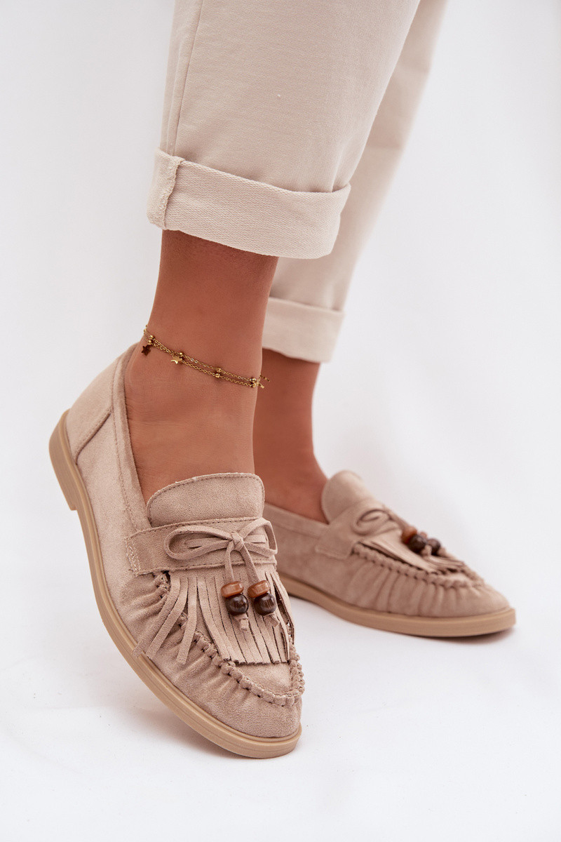Mocassins pour femmes avec des franges, couleur corail-sable, Teressa