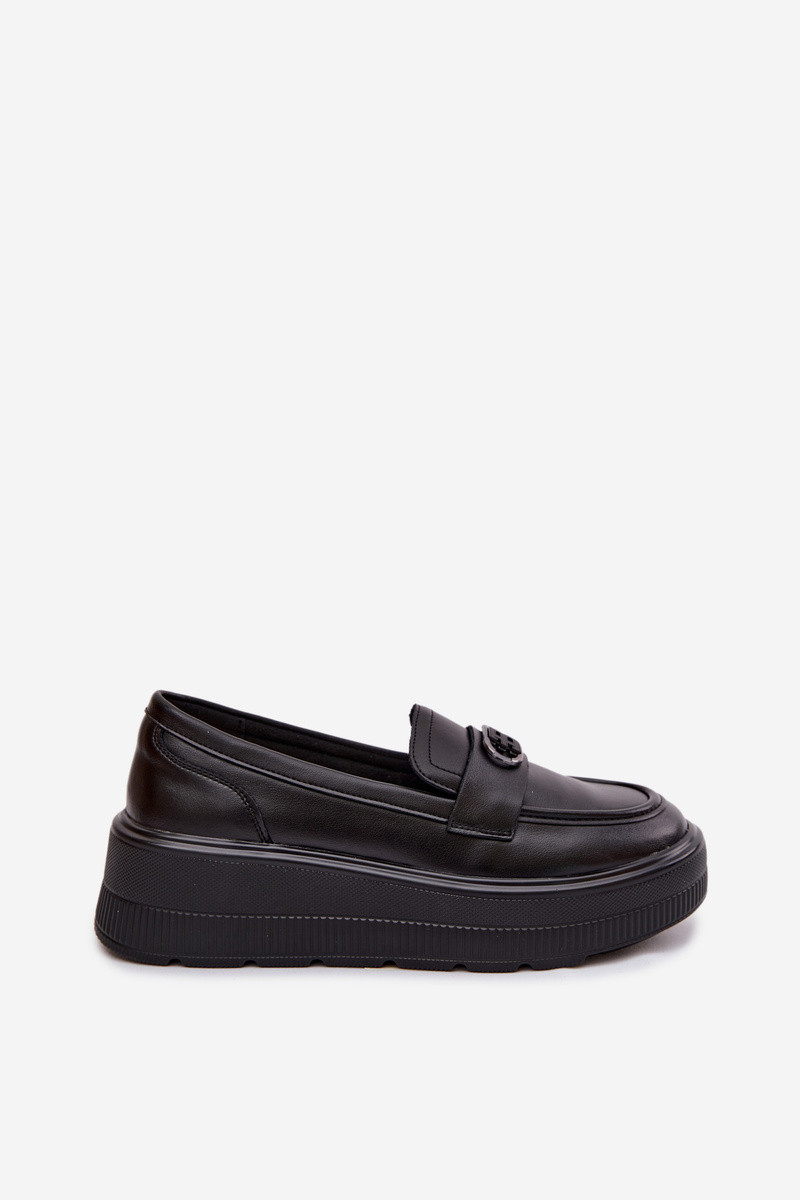 Mocassins en cuir pour femmes avec plateforme Vinceza 39974 couleur noire