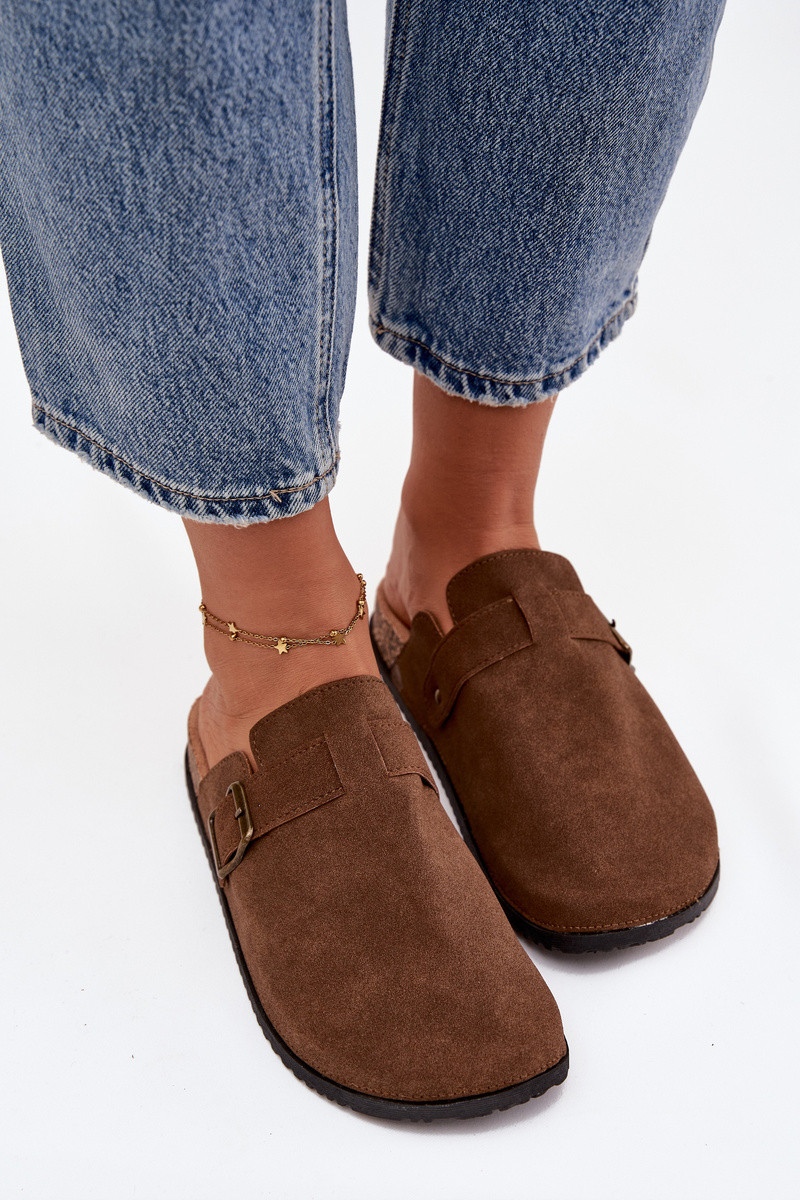 Chaussons Sabots Féminin i avec une plateforme avec boucles marron Selio