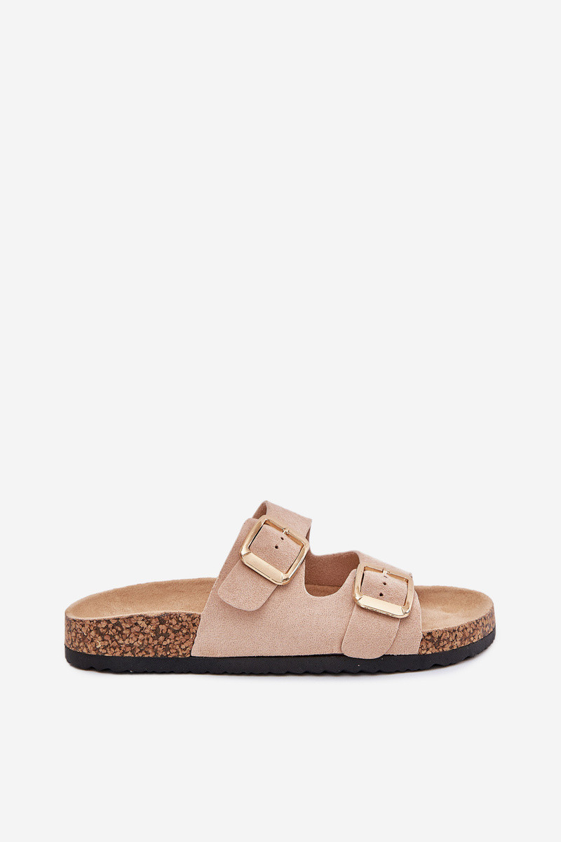 Chaussons pour femmes en suède synthétique avec boucle dorée couleur sable Vorella