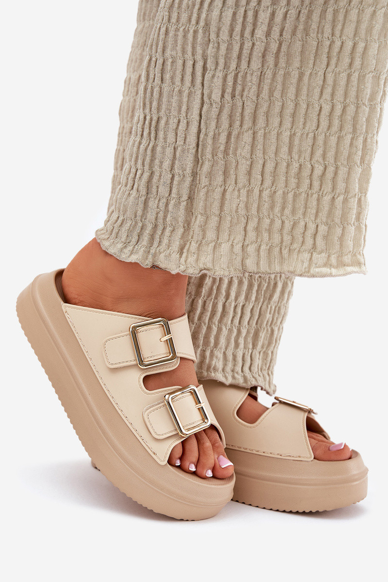Pantoufles pour femmes avec une plateforme Ze couleur doréemi avec bouclesmi beige Zorila
