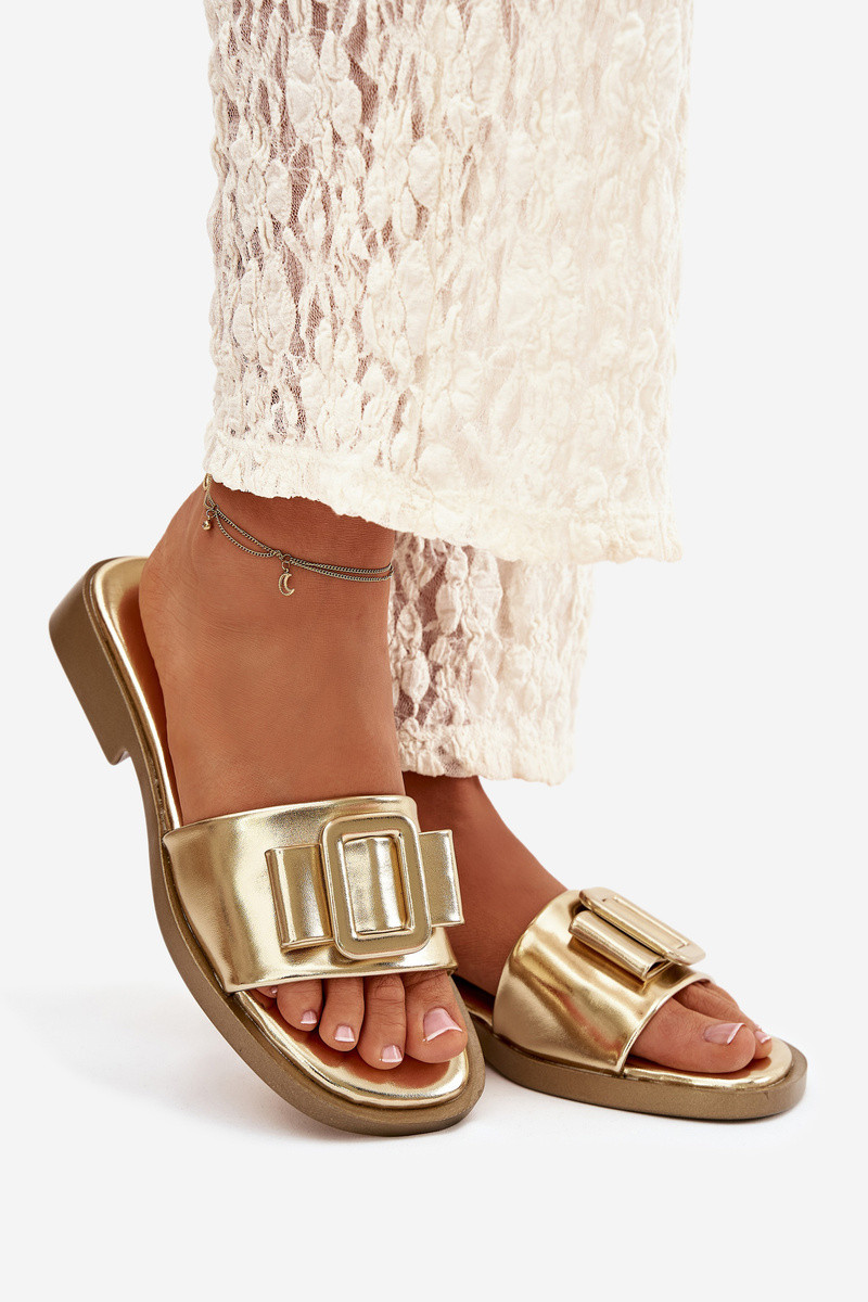 Chaussons pour femmes avec larges talons et boucles dorées « Melivra »