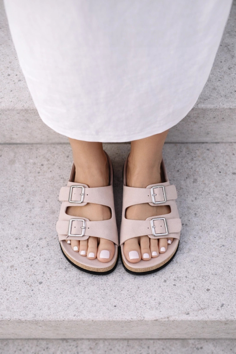 Chaussons rose clair pour femmes avec boucles « Oliena »