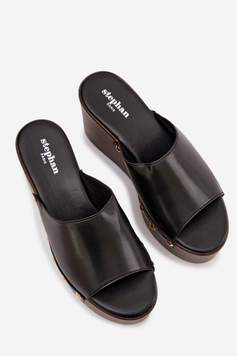 Chaussons pour femmes à plateforme avec clous de couleur noire Taireline