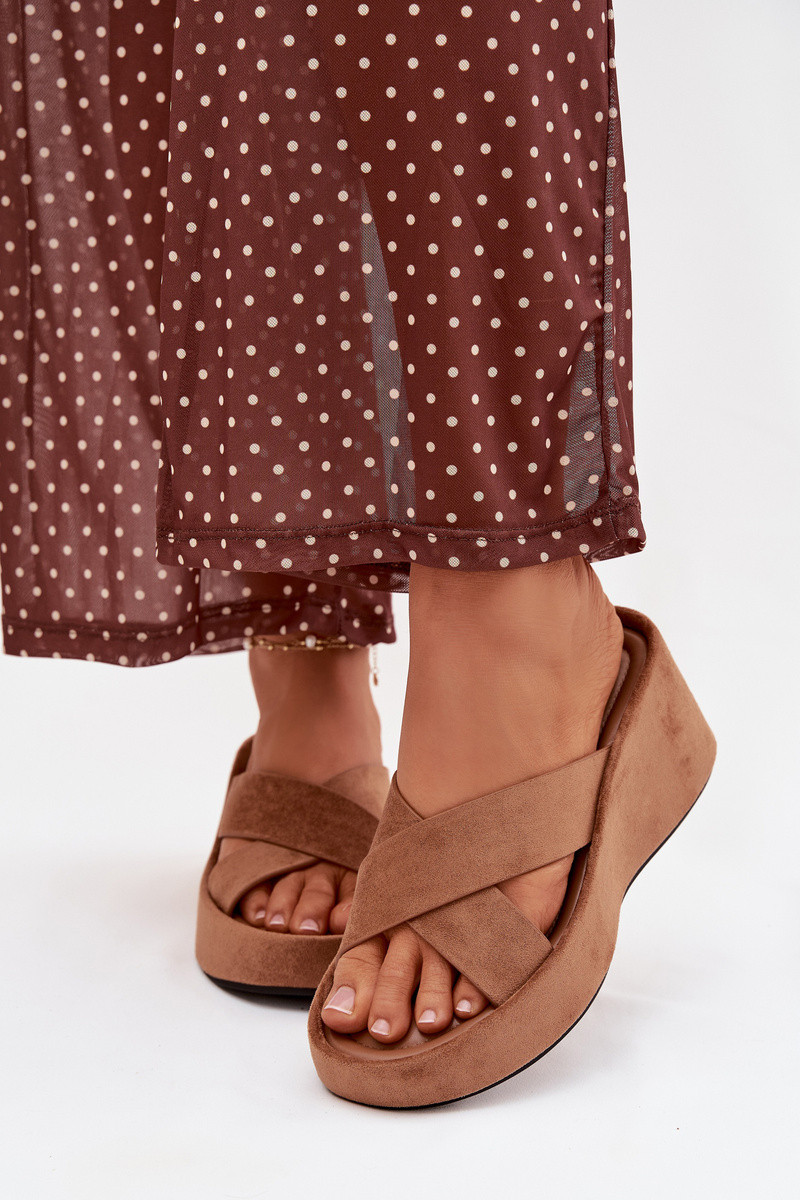 Chaussons pour femmes plateforme en daim synthétique „Calorine“ couleur marron