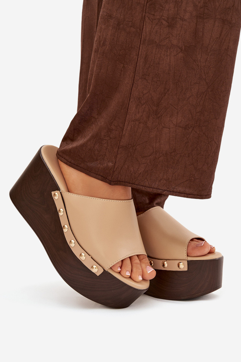 Tai turireline - Claquettes à plateforme pour femmes avec clous couleur sable