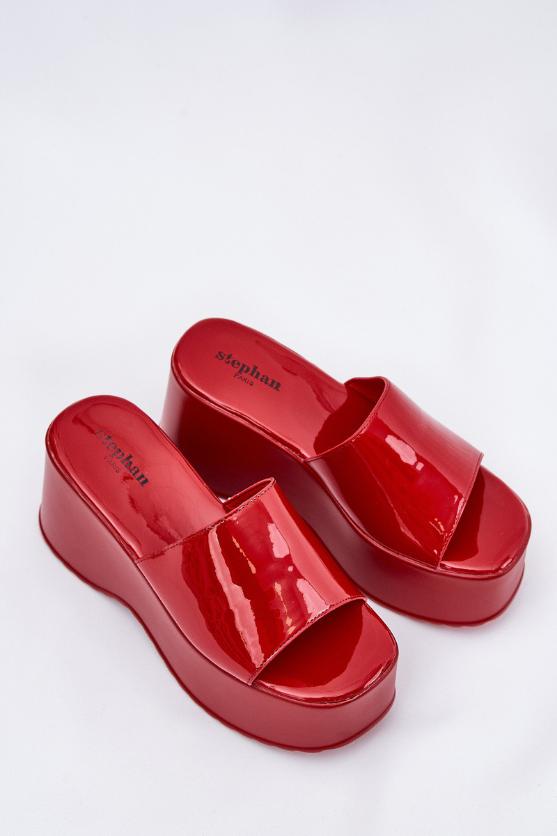Mules pour femmes en cuir effet verni avec plateforme rouges Nellevia