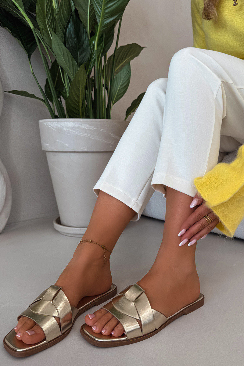 Chaussons Appartement pour femmes avec des bandes couleur dorée Il fautrissae