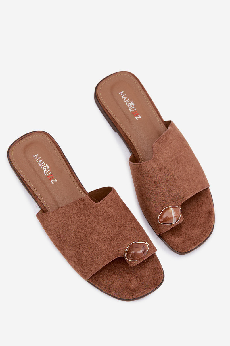 Pantoufles basses pour femmes avec des détails décoratifs en daim, couleur marron, Selavine