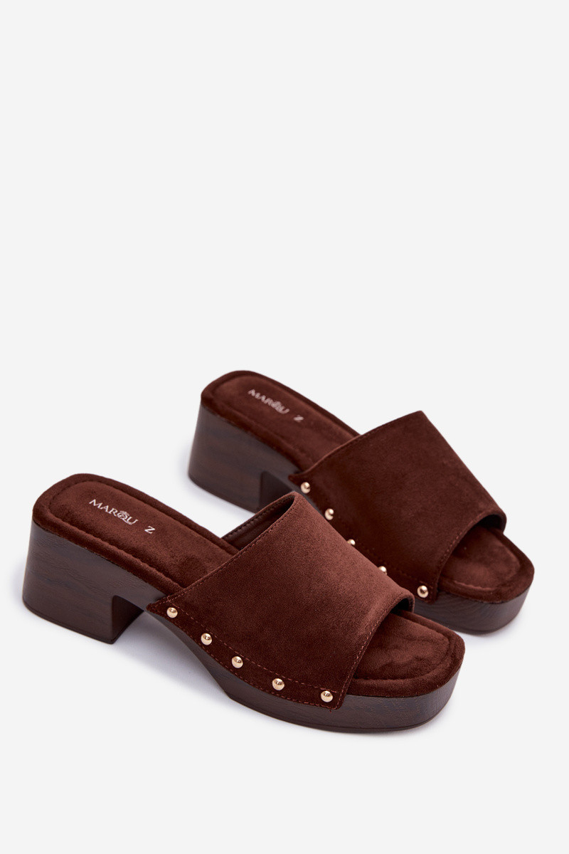 Chaussons mules pour femmes avec épingles dorées chocolat Davessa