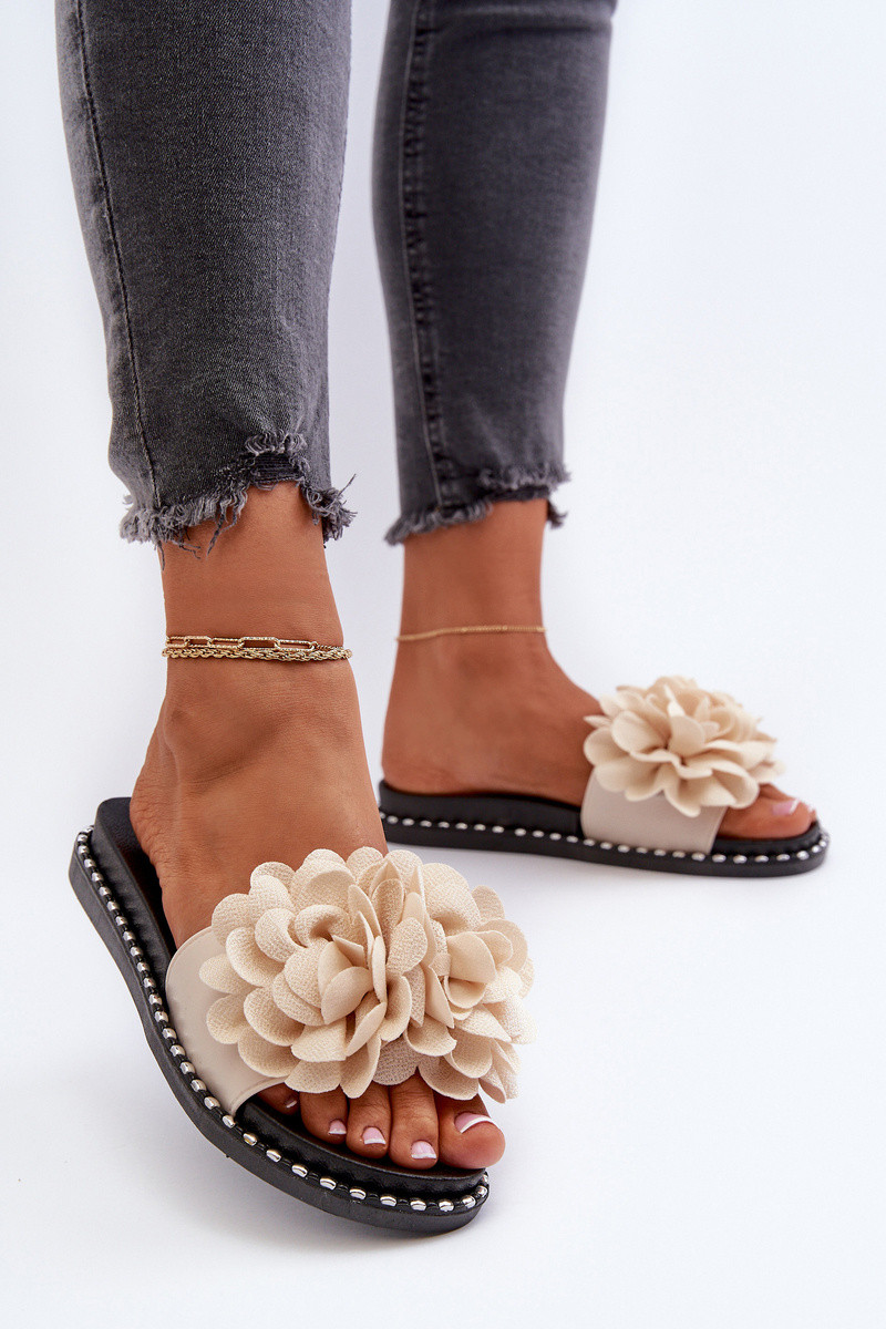 Pantoufles pour femmes Ozdobione avec des motifs florauxami beige Cellanen