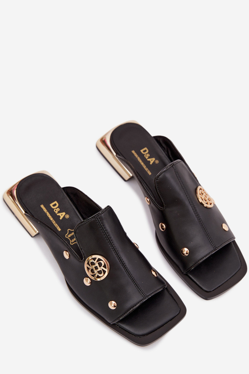 Pantoufles en cuir Ze couleur doréemi Ozdobami D&A CR61-3060 couleur noire